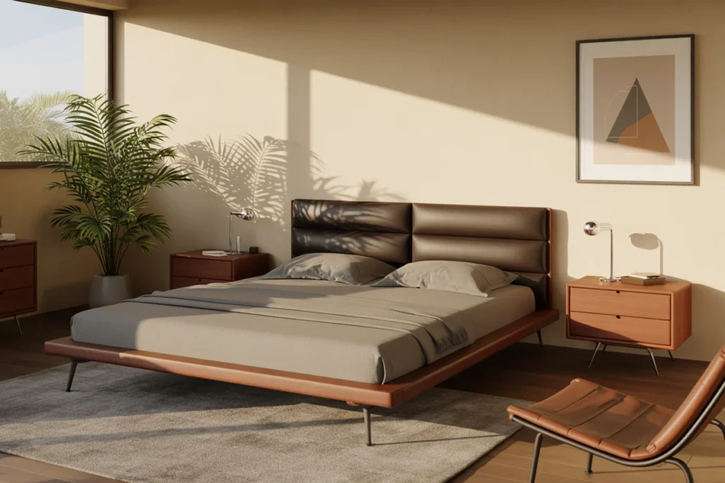 Mid-century modern design thrives on simplicity and symmetry. Every piece in your bedroom should feel intentional, with straight lines and smooth edges that maintain balance.