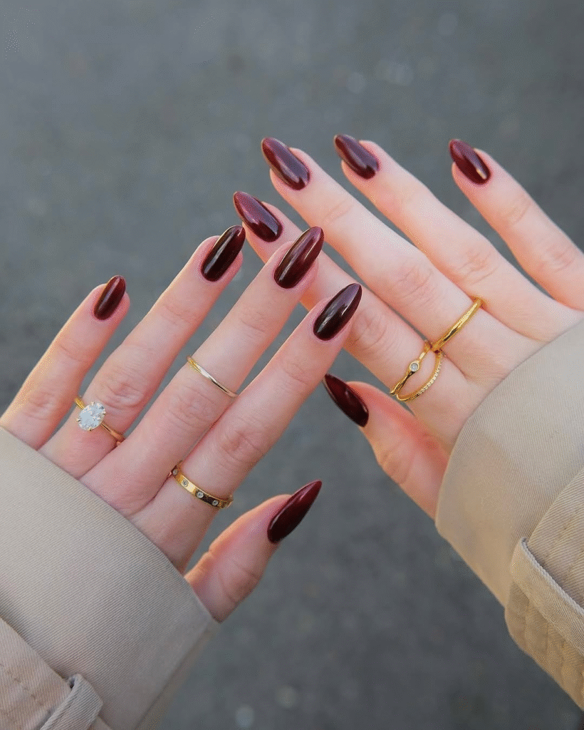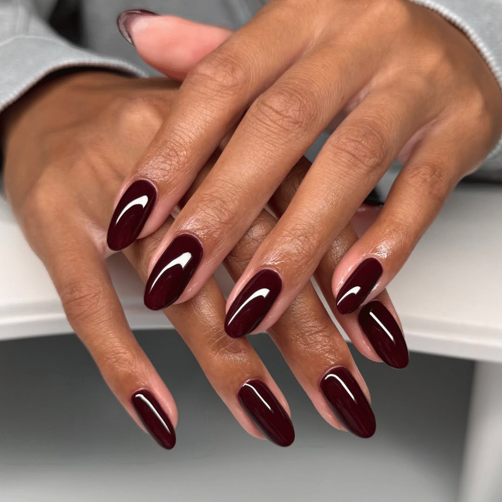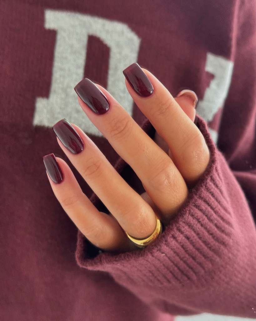 This bold, glossy burgundy manicure exudes confidence and elegance, making it a must-try this fall.