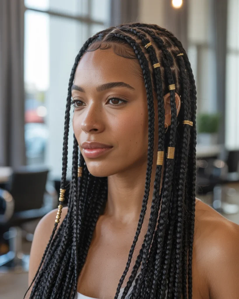For an extra personal touch, add hair accessories such as decorative clips, gold beads, or hair cuffs. These small touches can elevate the overall style of your knotless braids and make them even more unique.