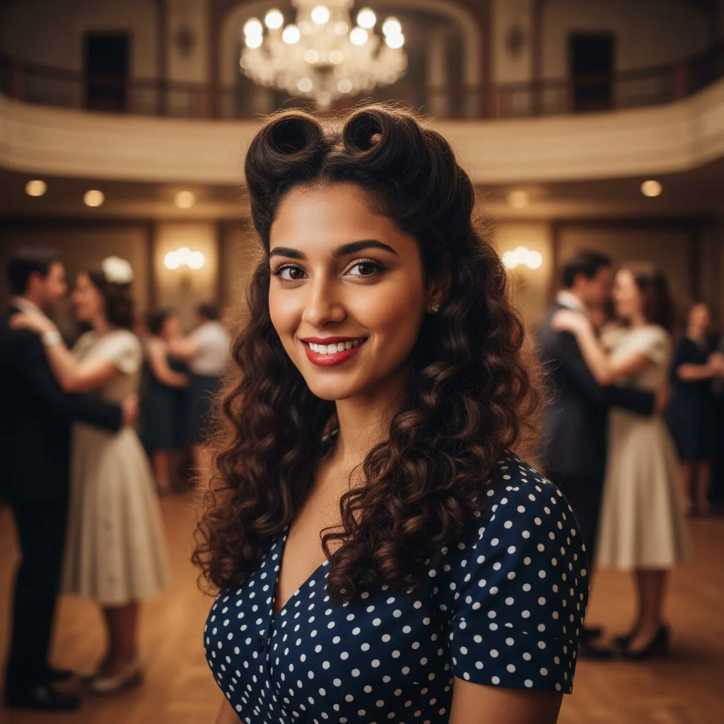 For a retro look, channel the 1940s with vintage-style victory rolls. Gather the top section of your curls and roll them into a classic vintage hairstyle. The rest of your curls will frame your face beautifully.