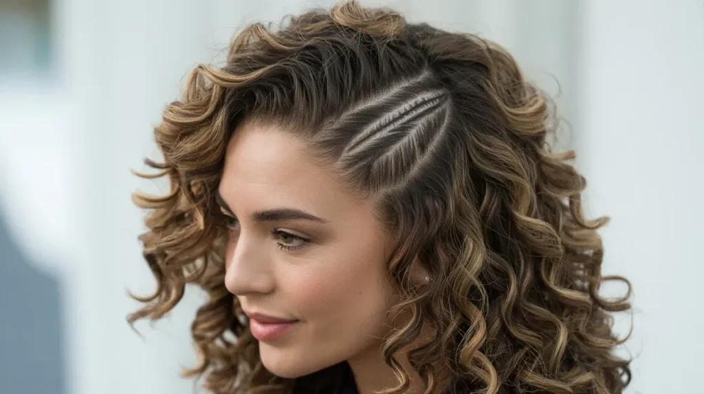 For a trendy, modern twist, try adding a zigzag part to your half up, half down curly hairstyle. This unique part gives your look a little edge and is perfect for showcasing your natural curls in a stylish way.