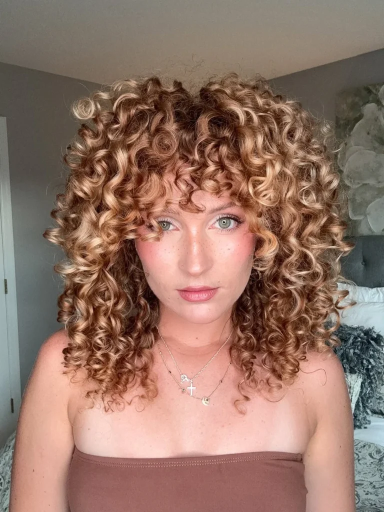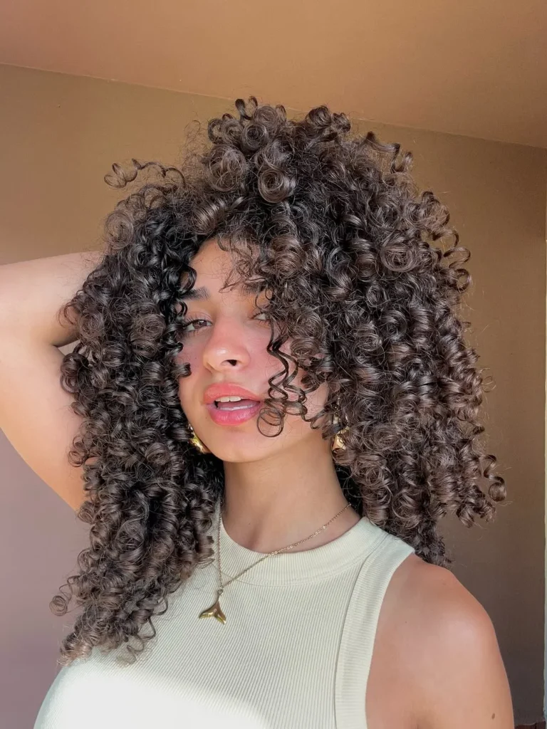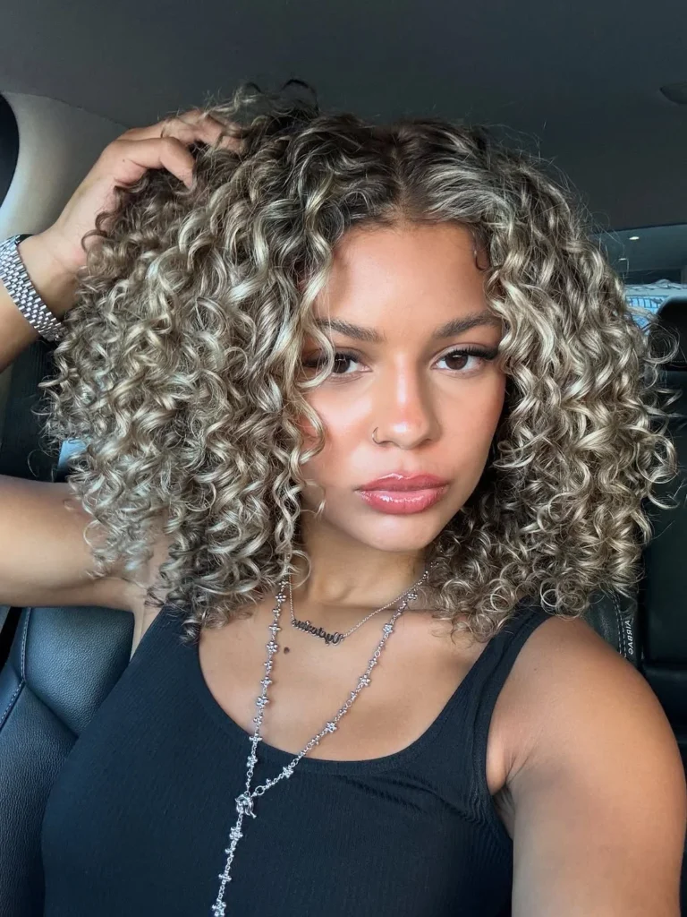 The soft face-framing curls add a gentle touch, balancing the playful vibe with a bit of charm. This look celebrates curls in the most carefree and stylish way.