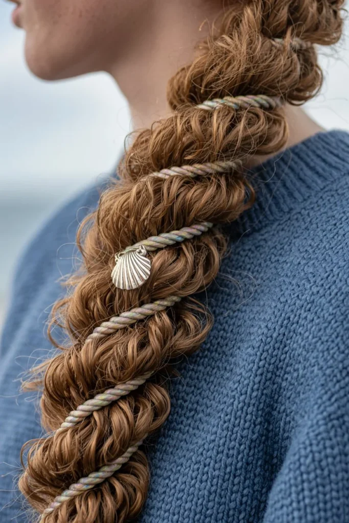 Small details like a shell charm or soft strands escaping the braid enhance its relaxed beauty.