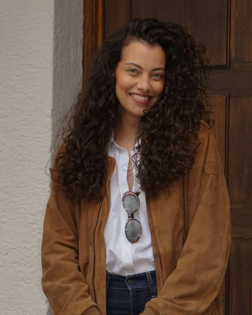 It’s a beautiful reminder that curls, when embraced, can make even the simplest outfit feel fresh and full of life.