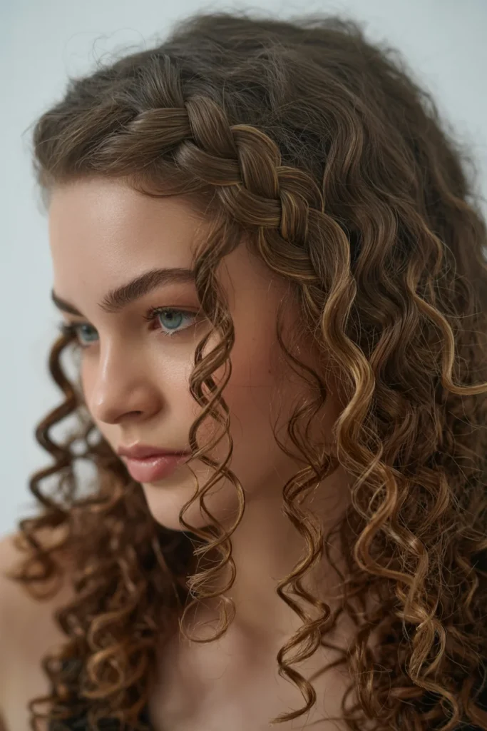 This hairstyle works beautifully for beach days, casual outings, or even festivals, offering a playful yet sophisticated touch. It’s effortless, artistic, and celebrates the natural movement of curly hair with a creative twist.