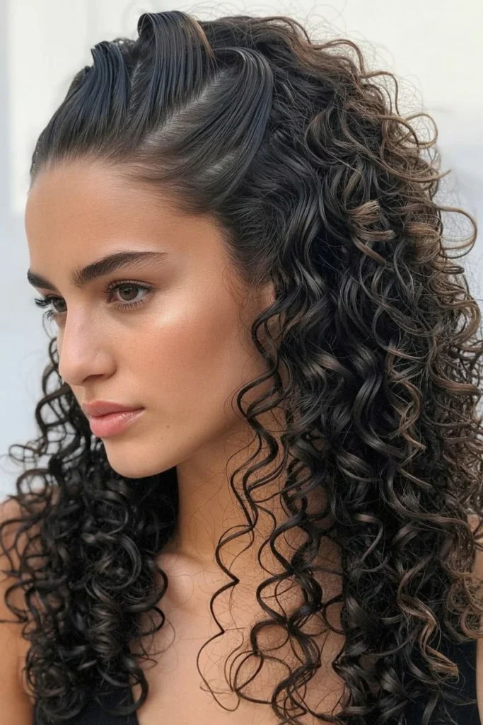 This look is bold yet refined, making it an excellent choice for weddings, parties, or any special event where curls deserve the spotlight.