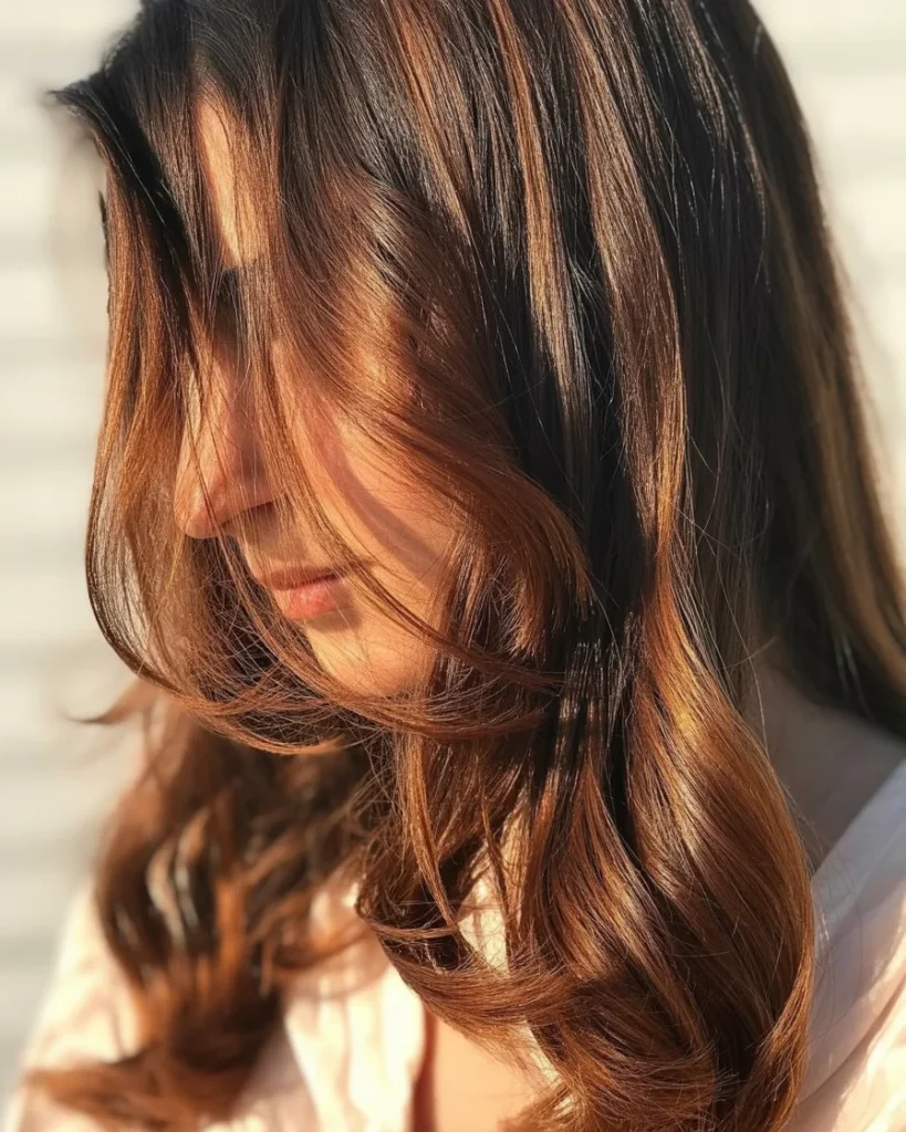 Subtle copper accents add warmth and glow without overwhelming the base color. These hints of copper catch the light beautifully. The result is a soft, radiant look that feels fresh and stylish. Copper accents work well for natural brunettes.