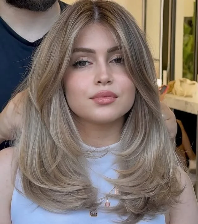 Soft beige blonde tones give this hairstyle a calm and polished feel that never looks forced. Gentle layering adds movement and shape, allowing the color to blend smoothly from root to ends.