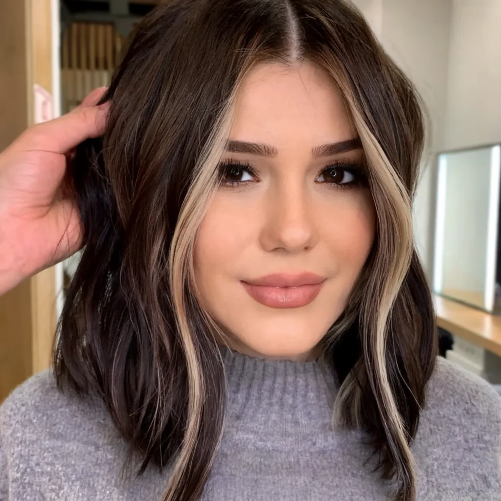 Contrast plays an important role here, as the lighter strands add depth without overpowering the natural brown color. Movement from the gentle waves keeps the style relaxed and modern.