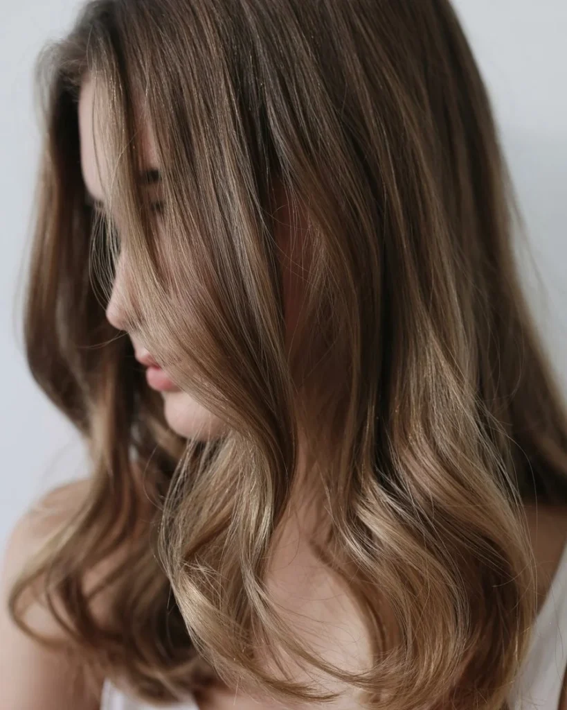 Texture plays a key role, as loose waves help showcase the subtle color variation. Overall, this hair color feels refined, natural, and effortlessly stylish for everyday wear.