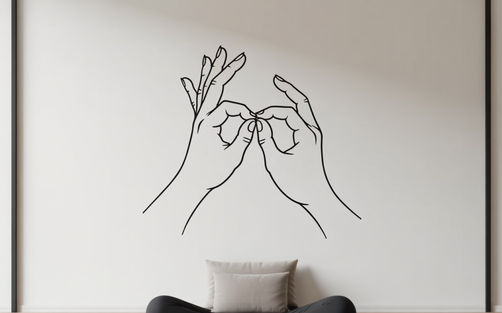 Move beyond standard posters. Create a focal point with a personal mudra. Select a hand gesture that holds meaning for your practice, like Gyan Mudra for knowledge or Dhyana Mudra for meditation.