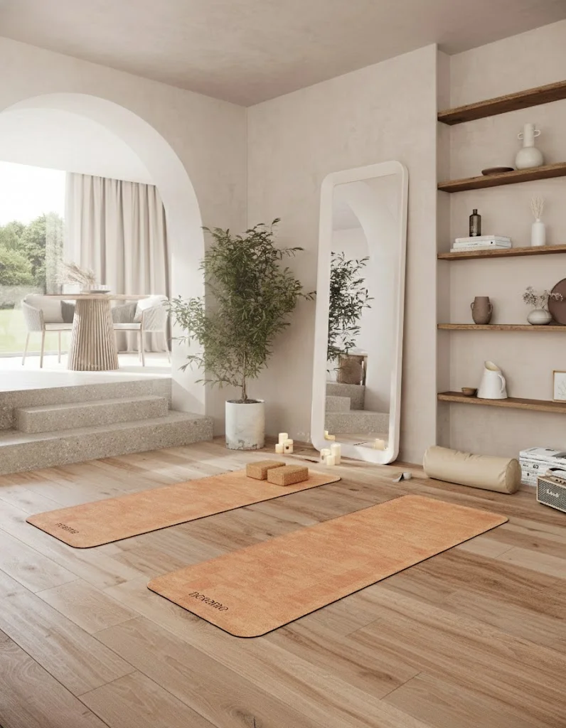 Invest in high-quality yoga mats that are both comfortable and stylish. Choose mats that offer a non-slip surface for your practice, and pick colors that align with your room’s overall aesthetic. Whether you prefer a thick mat for added cushioning or a thinner mat for stability, find one that suits your needs.