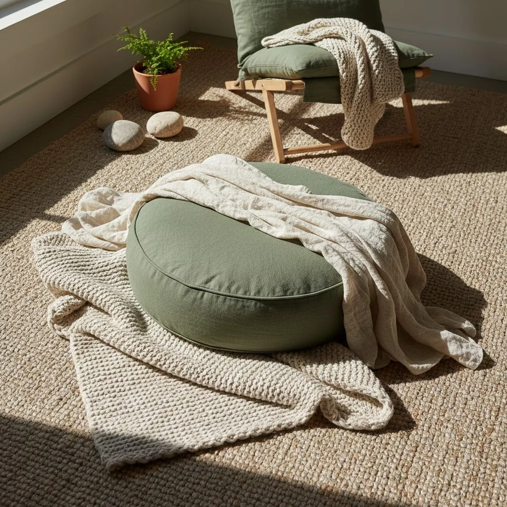 Ground your space with texture. Start with a sturdy, natural fiber rug. Jute or sisal works well. Add a softer, washable cotton or wool blanket on top for comfort. Drape a lightweight linen throw over your meditation cushion or folded chair.