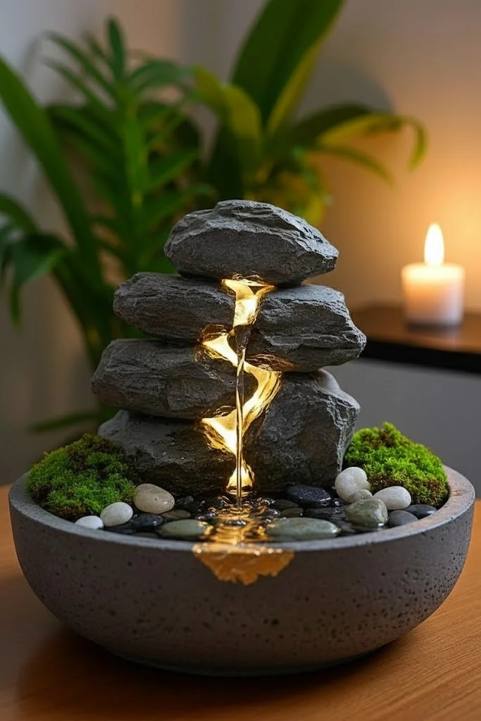 9. Serene Water Fountain for Yoga Spaces