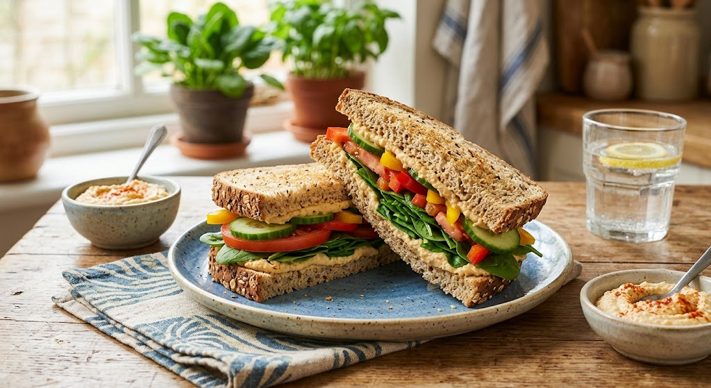7. Veggie and Hummus Sandwich on Whole Grain Bread