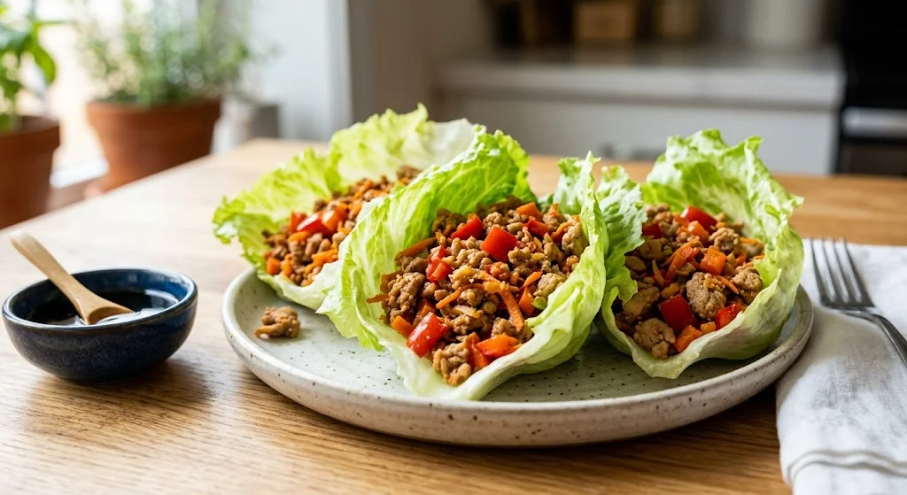 - Spoon the turkey mixture into lettuce leaves and serve.