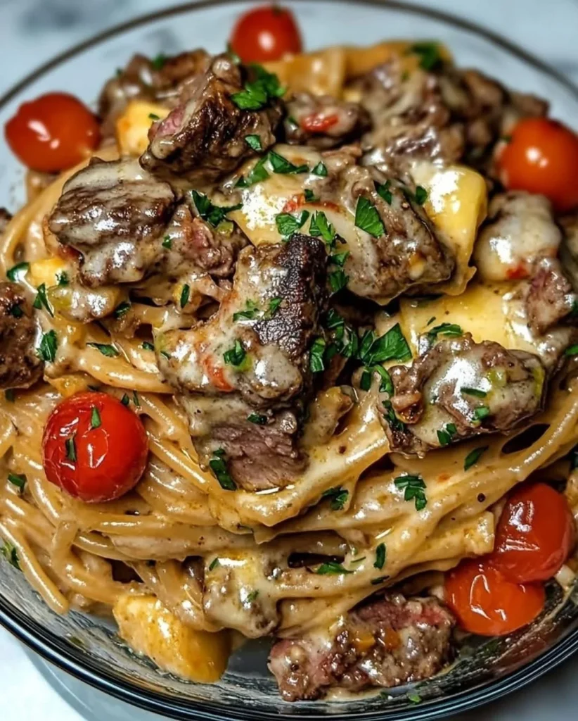 This spicy beef pasta bowl is a rich, indulgent dish that combines tender steak with creamy pasta for a satisfying dinner. The beef is cooked to perfection and mixed with a creamy sauce, creating a deliciously spicy and savory experience. Sweet cherry tomatoes and fresh herbs add a burst of color and flavor to every bite. The creamy sauce perfectly coats each pasta shell, making it a comforting and hearty meal. The dish is topped with a sprinkle of fresh parsley, making it both flavorful and visually appealing. For those who love bold flavors, this pasta bowl is a great choice. It’s the right balance of heat and creaminess to make your taste buds dance.