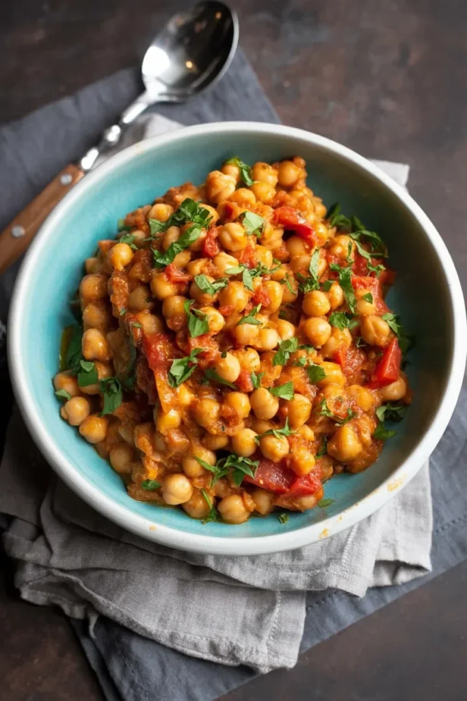 A vibrant and hearty spicy chickpea bowl is a must-try for a fulfilling dinner. Chickpeas are cooked in a rich, spiced tomato sauce, infusing them with bold flavors. The combination of chickpeas, ripe tomatoes, and fresh herbs creates a dish that is both comforting and satisfying. Adding a dash of chili powder and cumin enhances the spice profile, while a sprinkle of fresh cilantro brings everything together. This meal pairs wonderfully with a side of steamed rice for extra texture and fullness. It’s an easy-to-make, flavorful bowl that captures the essence of comfort food with a spicy twist.
