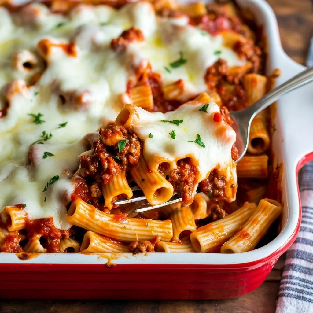 Once the baked rigatoni is ready, remove it from the oven and let it cool for a few minutes. Serve with a sprinkle of fresh parsley for a burst of color and extra flavor. Pair it with a simple side salad or garlic bread for the perfect meal.