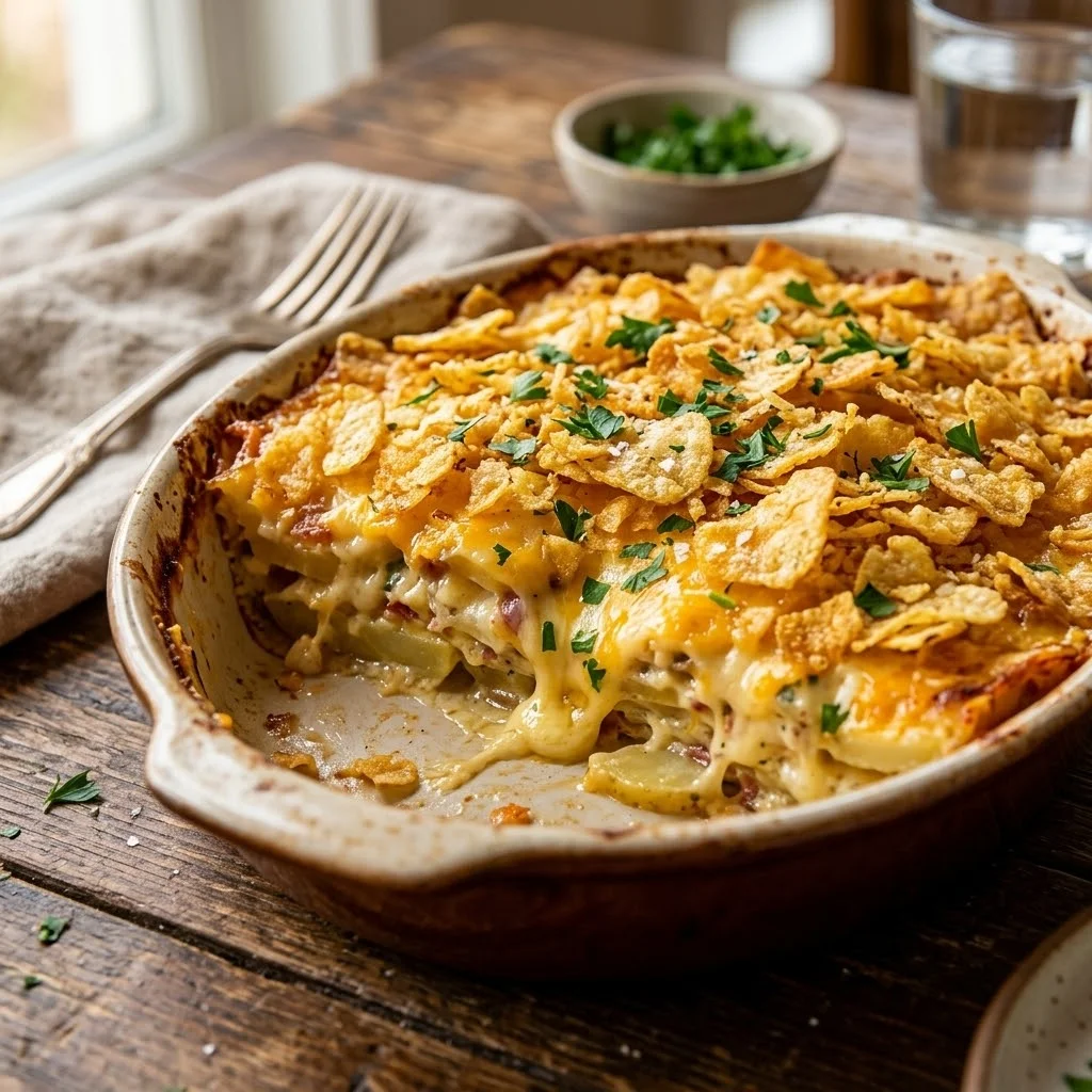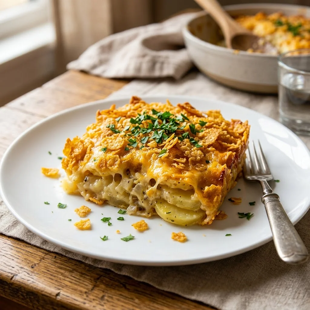 These ingredients come together to form a rich, creamy, and cheesy casserole that’s perfect for any time of year. The potatoes absorb the creamy sauce, while the melted cheese binds everything together. The cornflake topping adds a delicious crispy texture that’s irresistible.