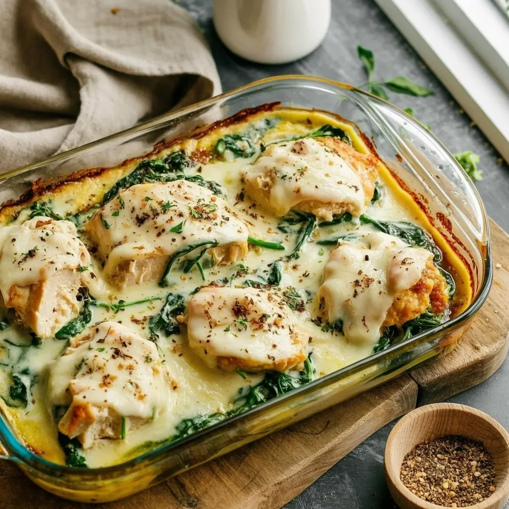 Healthy Spinach Artichoke Chicken Bake