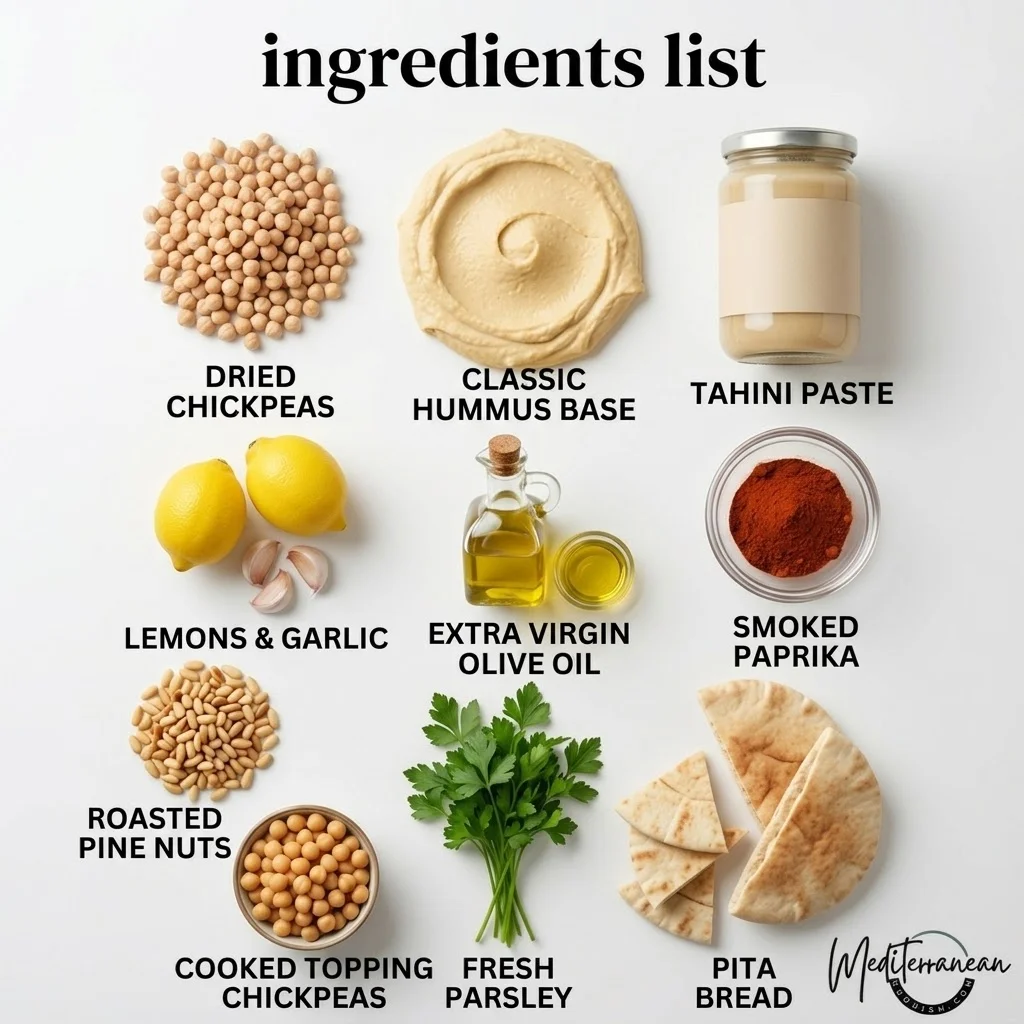 - Optional garnishes: Olive oil, paprika, pine nuts, parsley, or sun-dried tomatoes for extra flavor and visual appeal