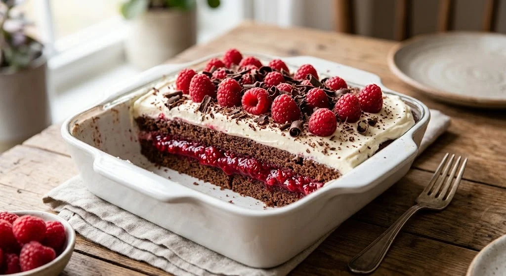 Once your cake is done, allow it to cool for about 10 minutes before serving. You’ll want to give it a little time to set, so the layers stabilize, but you’ll still enjoy a warm slice when it’s served. Garnish with extra fresh strawberries or a drizzle of chocolate syrup for that extra wow factor.