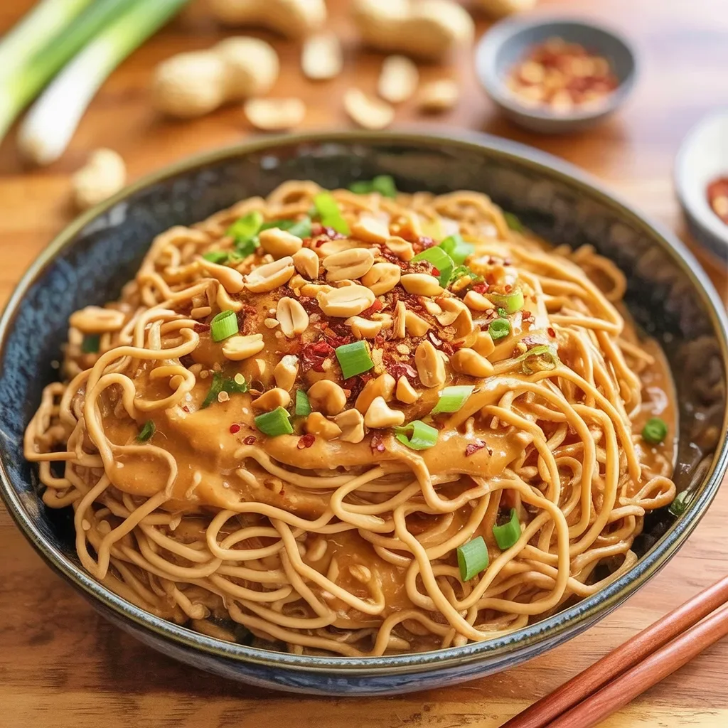 Transfer the noodles to serving bowls and sprinkle with chopped green onions, crushed peanuts, and chili flakes for extra flavor and texture.