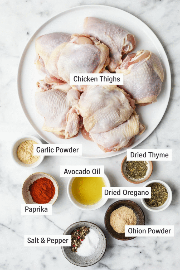 You can use bone-in or boneless chicken thighs. Bone-in thighs give more flavor, but boneless thighs cook a little faster.